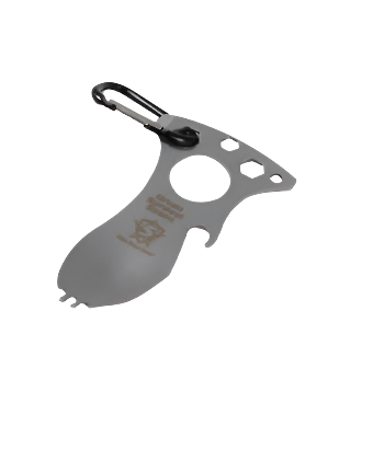 Regular price $3.50 USDSale price $3.50 USD Regular price $4.95 USDUnit price / perAll in one spoon, fork, and bottle opener with three hex wrenches (6mm, 8mm & 10mm)Equipped with carabiner for attaching to equipment or clothingLarge central hole...