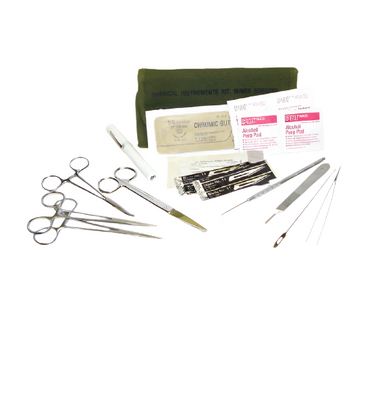 Regular price $20.00Sale price $20.00 Regular price $40.95Unit price / perPerfect to throw into a travel bag or for small emergenciesContains: 2 straight and 1 curved hemostat, scissors, tweezers, #3 scalpel handle, 2 scalpel blades, suture set, holder, needle...