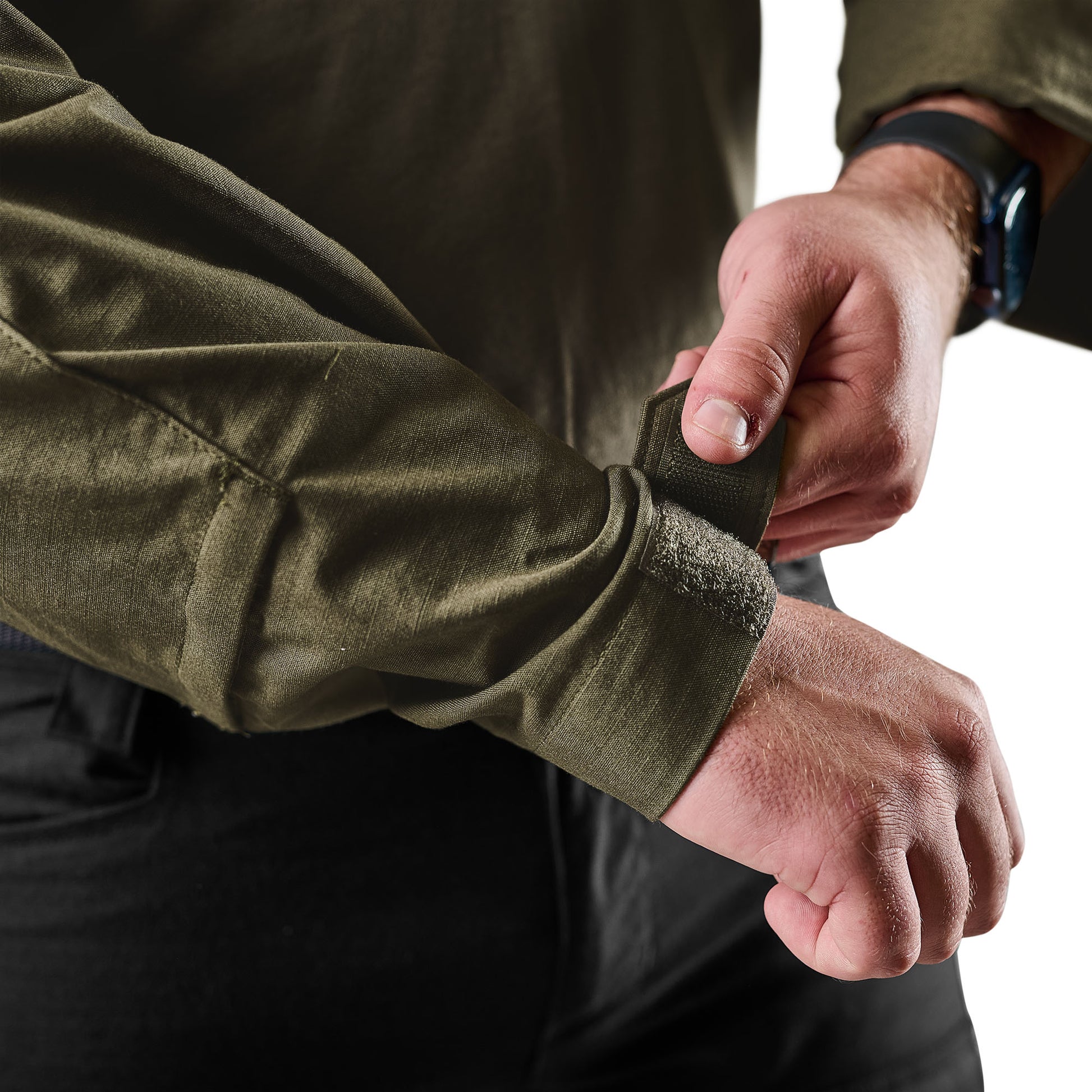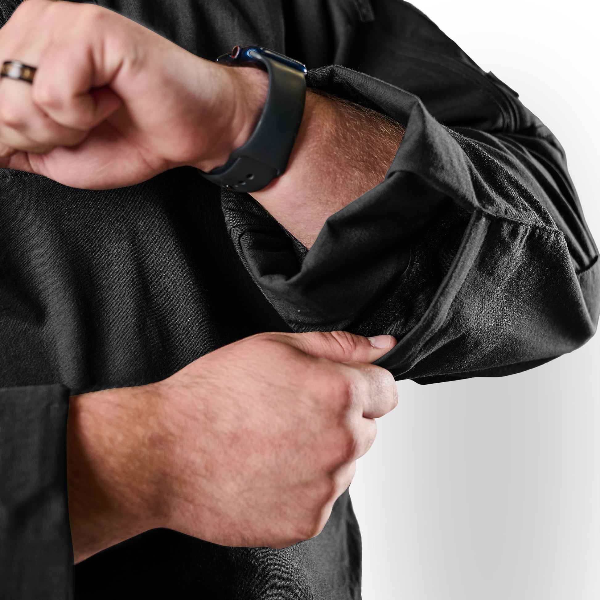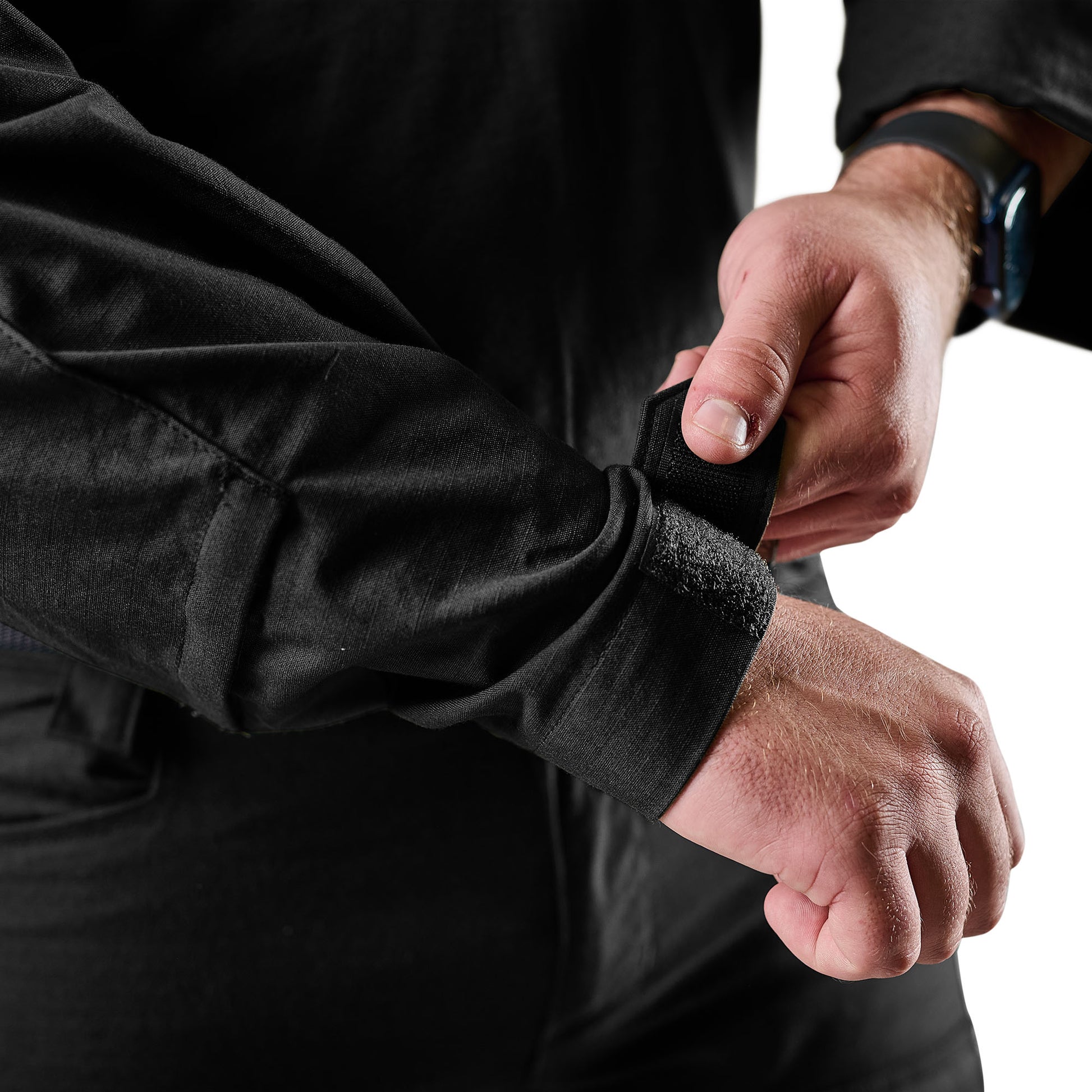 - Adjustable Velcro® cuffs for secure fit under gear