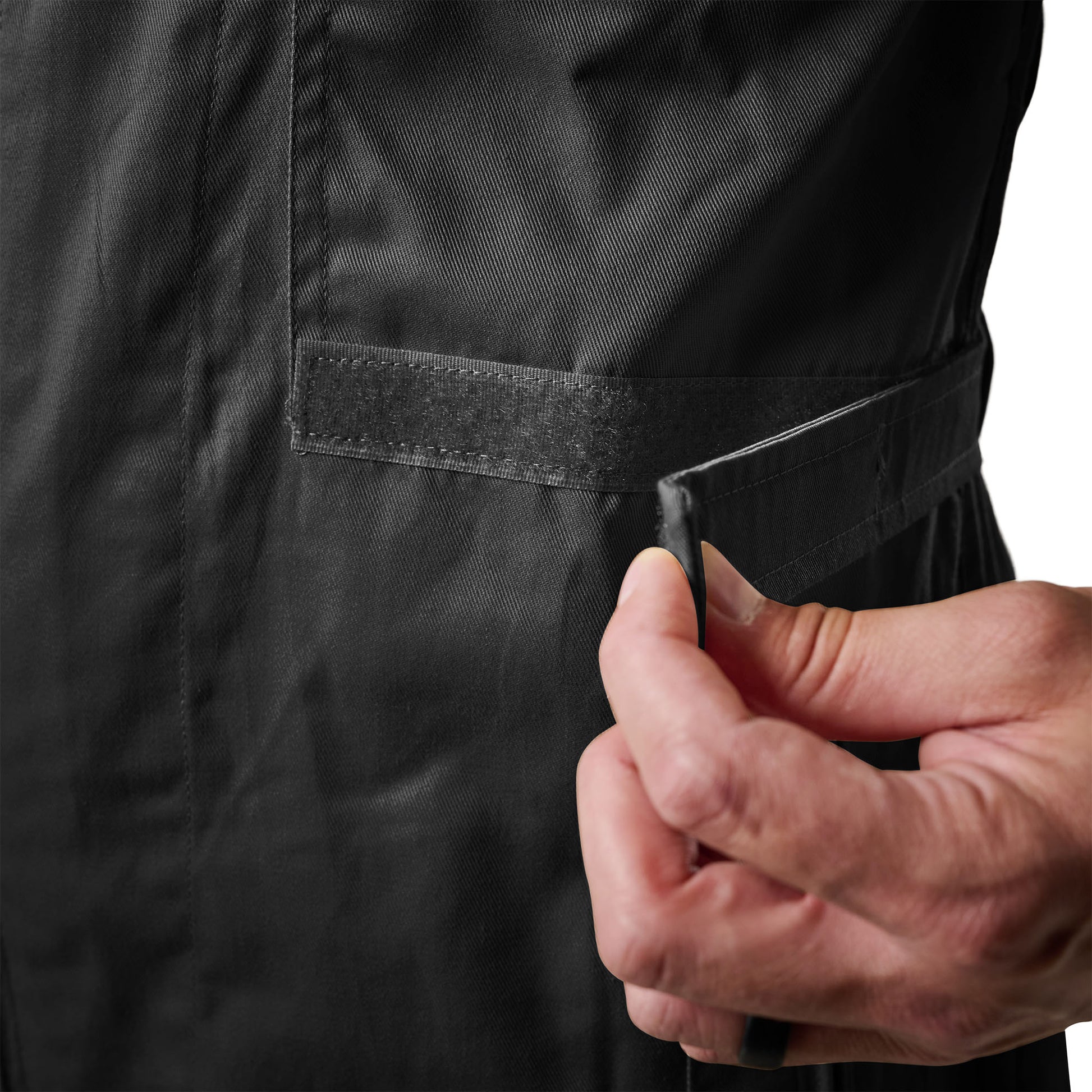 - Zippered leg openings to slide over boots or gear with ease