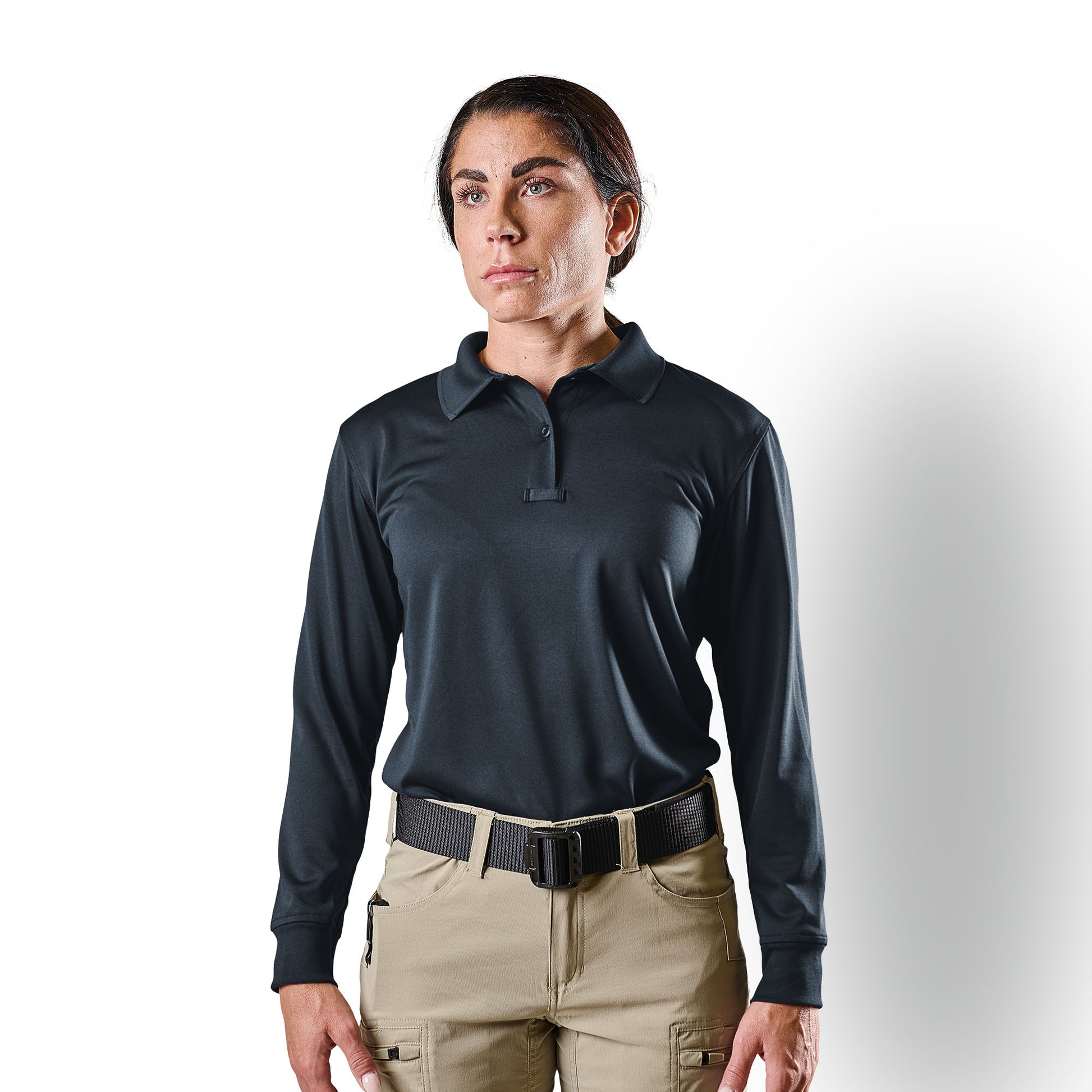 Engineered for professionals who demand high-performance with a sharp appearance, the Women's Long Sleeve Performance Polo delivers the technical features you need in a tailored long-sleeve format. With 4-way stretch fabric, moisture-wicking and antimicrobial finishes, and 50+ UV protection, this polo keeps you moving and comfortable whether you’re on duty, in training, or working behind the scenes.